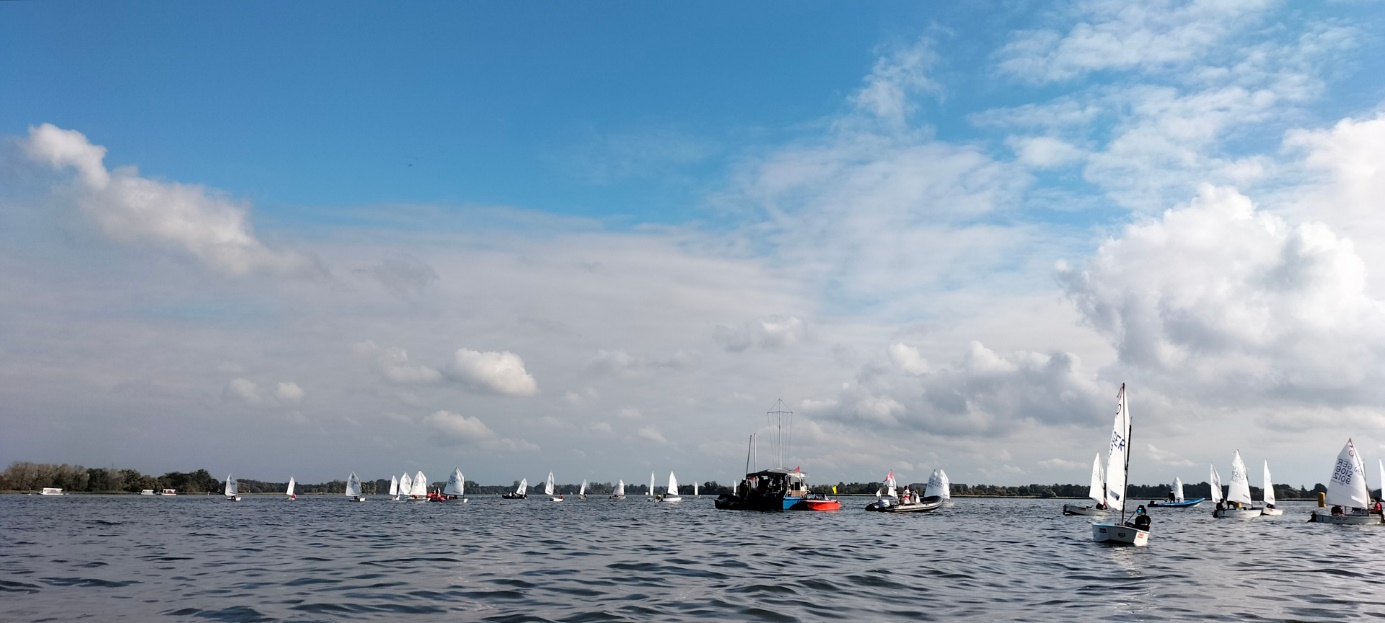 In meiner Bootsklasse, Opti A, waren insgesamt 29 Boote am Start. Das Wetter hat’s allerdings ordentlich in sich gehabt: Kälte, Regen und richtig starker Wind. Aber ich hab mich nicht unterkriegen lassen und meinen Verein, die SVEW, ordentlich vertreten.